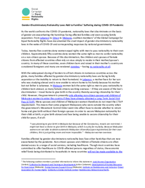 Gender-Discriminatory Nationality Laws Add to Families’ Suffering during COVID-19 Pandemic by wordpressadmin | Oct 4, 2023 View Document